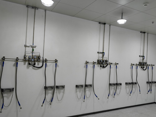 3.5N惰性氣體、氦氣、預先存留氣經理助理線利用OD1/4”(6.35mm)的管線,支線利用OD1/4”(6.35mm)的管線。用對接焊三通管件決出支路來對主設備做出供氧。